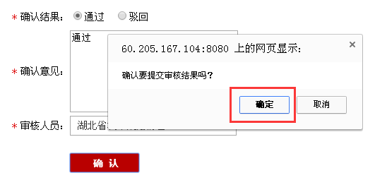3)审核个人上报信息内容,确认无误后,填写确认意见,点击【确定】,即完成企业报送,如图所示: