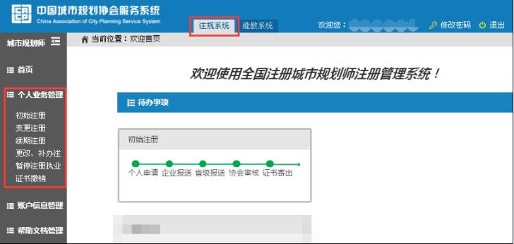 示例:初始注册,点击【个人业务管理-初始注册】,按要求填报基本信息、工作简历、主要业绩、初始注册单位劳动合同信息等内容,如图所示:
