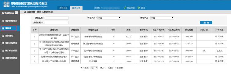 2)进入“中国城市规划协会服务系统”的继教系统,点击【课程库】,即可查看培训信息,如图所示: